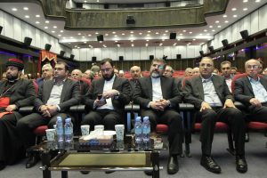 به گزارش مرکز روابط عمومی و اطلاع رسانی وزارت فرهنگ و ارشاد اسلامی، سیدمحمد هاشمی جانشین وزیر فرهنگ و ارشاد اسلامی، محمد خزاعی رئیس سازمان سینمایی، اصحاب فرهنگ، هنر و رسانه از ادیان مختلف توحیدی از جمله اسقف مار نسای بنیامین اسقف اعظم آشوریان ایران، پدرام سروش پور اسقف زرتشتی، اسقف متئو اسقف کلیسای لاتین، آرش آبائی ادیان کلیمی و استاد دانشگاه، حاخام اعظم یونس حمامی لاله زار کلیمی، اسقف بنیامین آشوری اسقف وانیا سرگیز آشوری کلدانی کاتولیک و بیاینا محمودی بازیگر ارمنی سریال گاندو از حاضران در این نشست بودند.