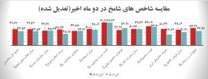 عدد شامخ کل در آذر ماه پس از حذف اثر فصلی (۴۳.۵۳) در مقایسه با آبان ماه (۴۹.۶۲)، با کاهش قابل توجهی همراه بوده است.