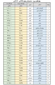وی گفت: مثلا در استان آذربایجان شرقی با تحقیقی که صورت گرفته و مبنای آن نیز قیمت بازار است قیمت گندم حداقل ۲۰ و حداکثر ۲۸ هزار تومان و میانگین آن ۲۴ هزار تومان است که در این جدول نیز مشخص شده است. برنج ایرانی نیز ۱۰۶۵۶۳ ریال و حداکثر ۱۳۶۵۶۳ ریال و متوسط آن است ۱۲۱۵۳۵ ریال است. برنج خارجی نیز حداقل ۶۰۲۵۰ ریال و حداکثر ۸۴۳۸۰ ریال و میانگین ۷۲۳۱۰ ریال است.